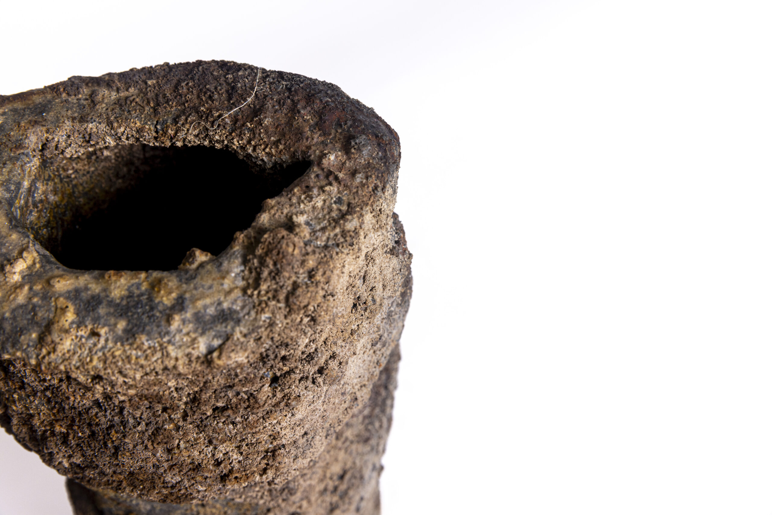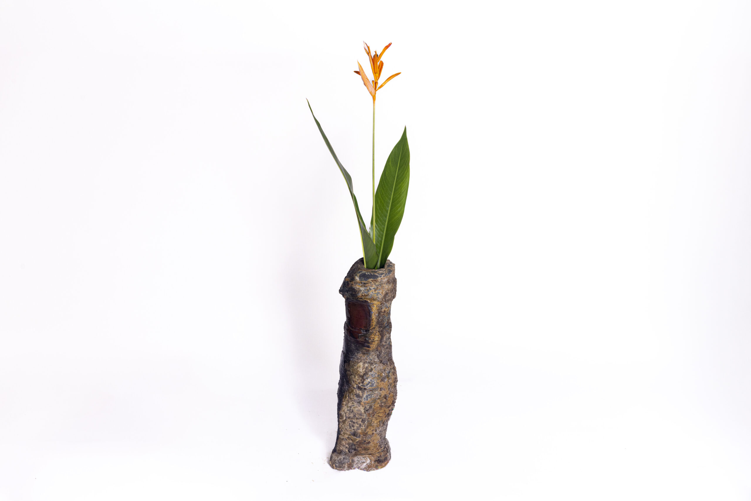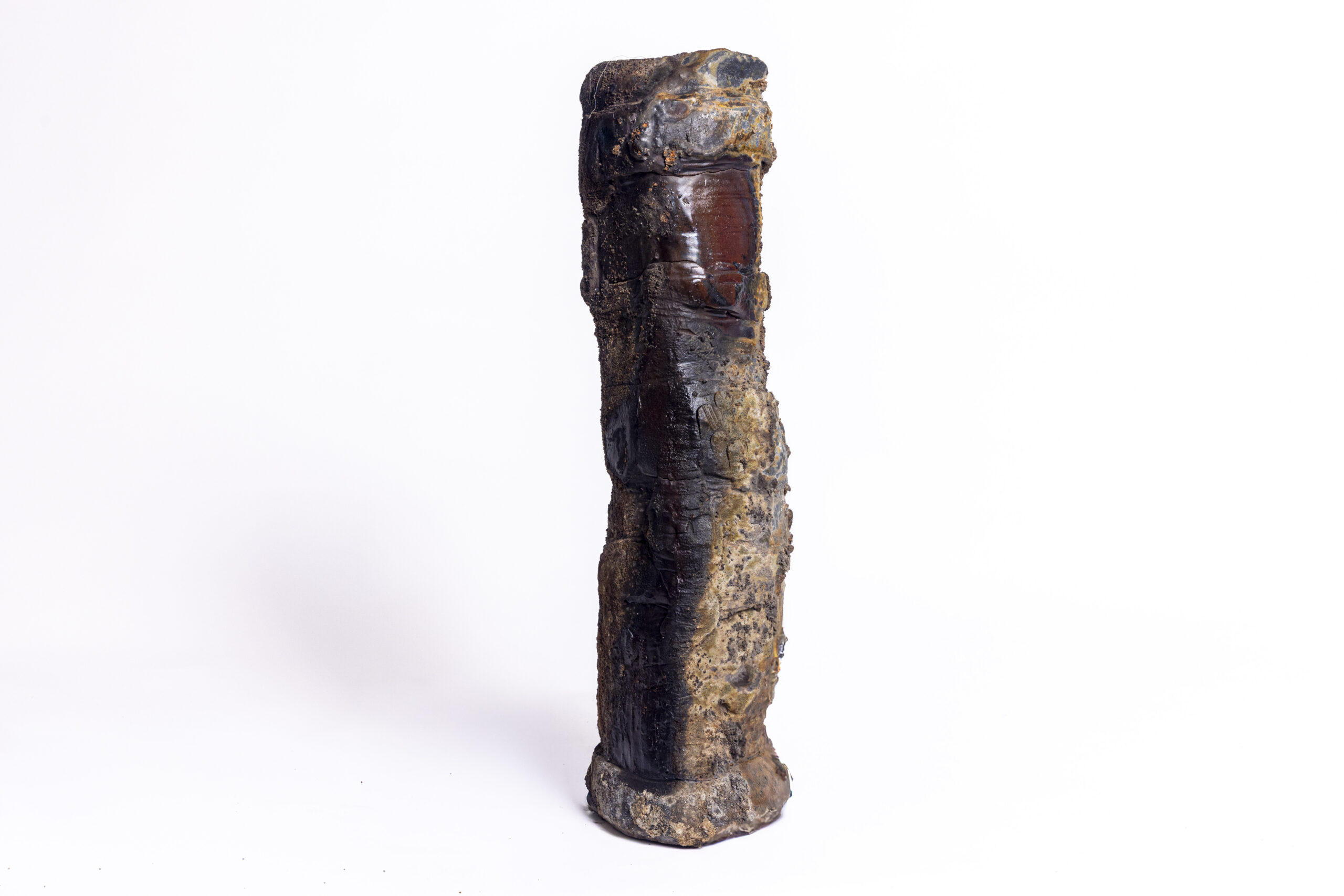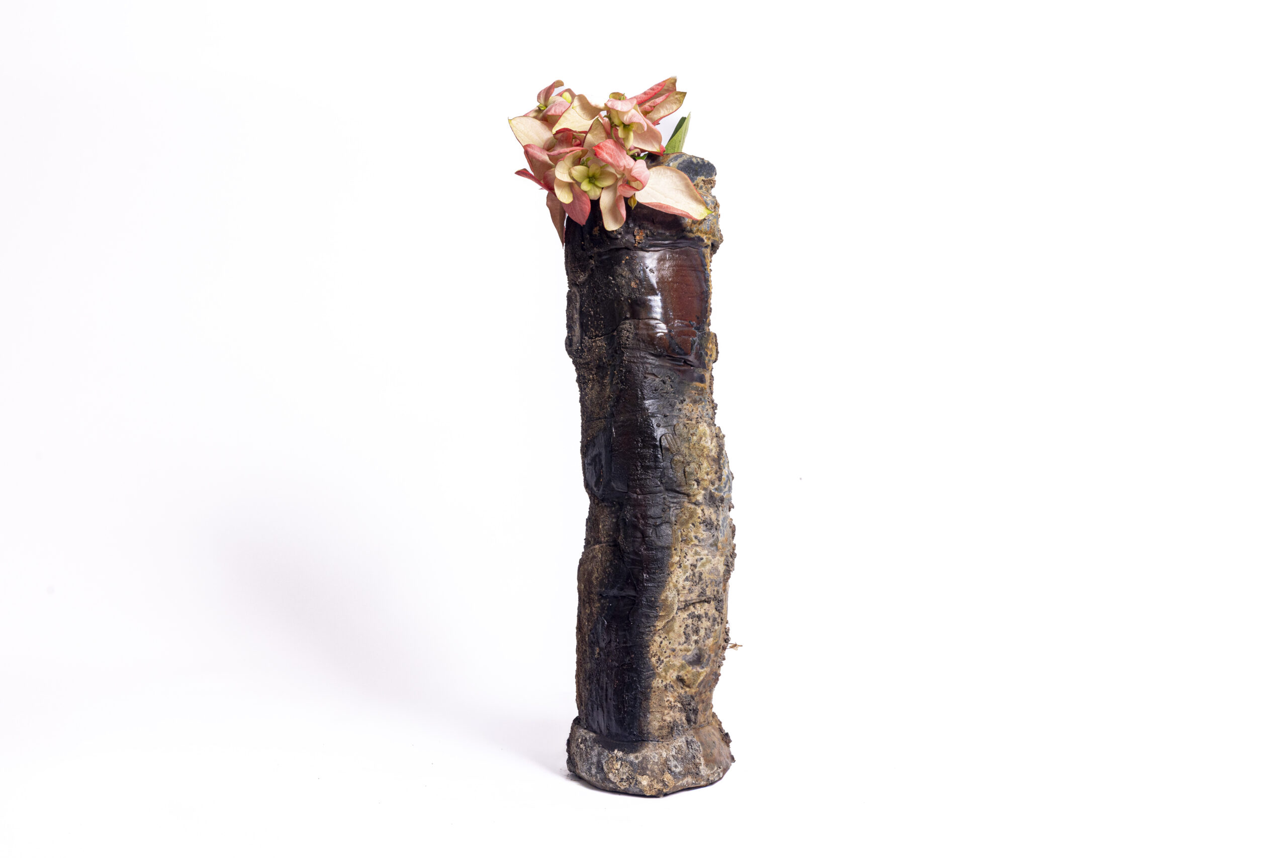 A striking vase defined by strong, bold forms and rich textures — a piece that draws attention.