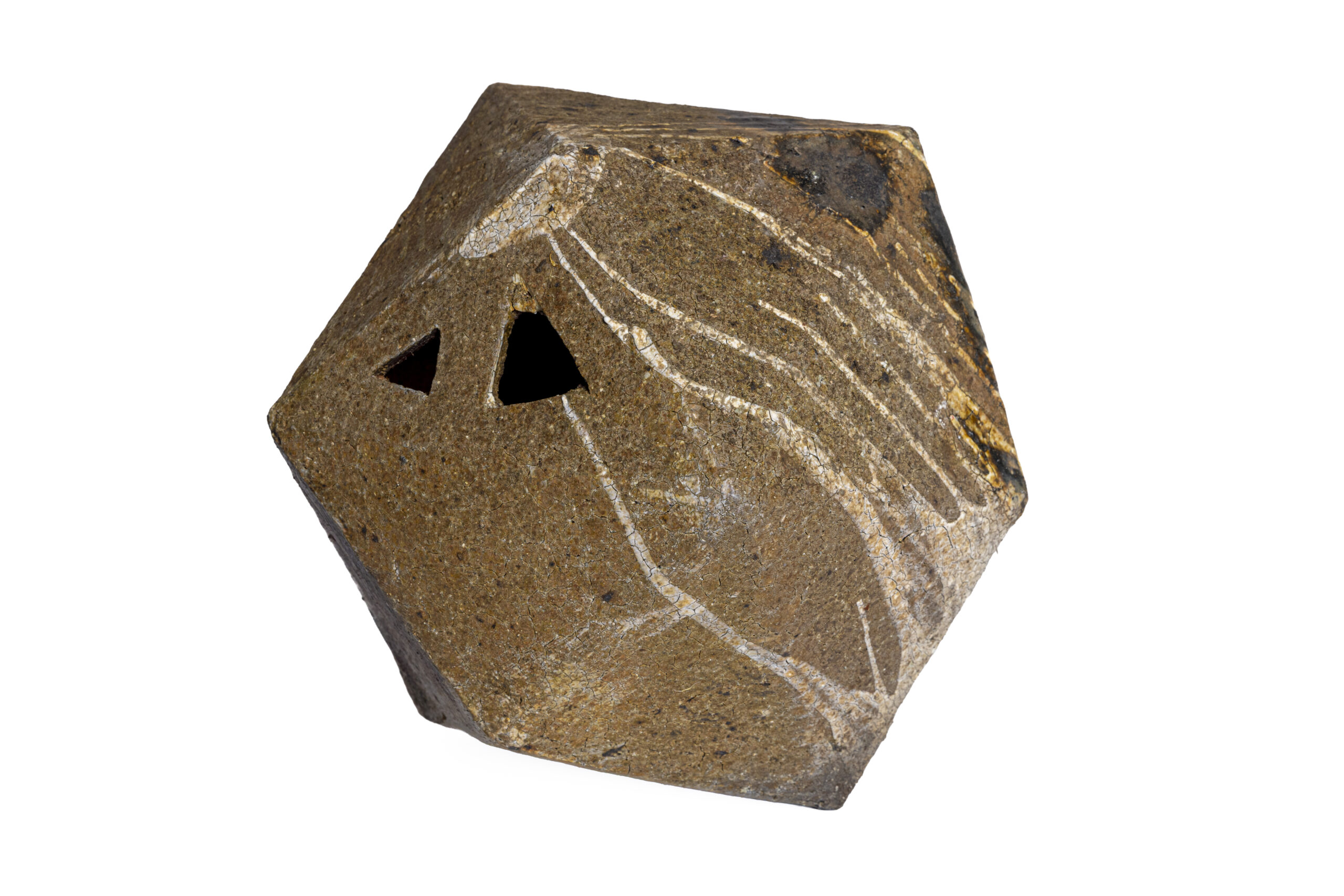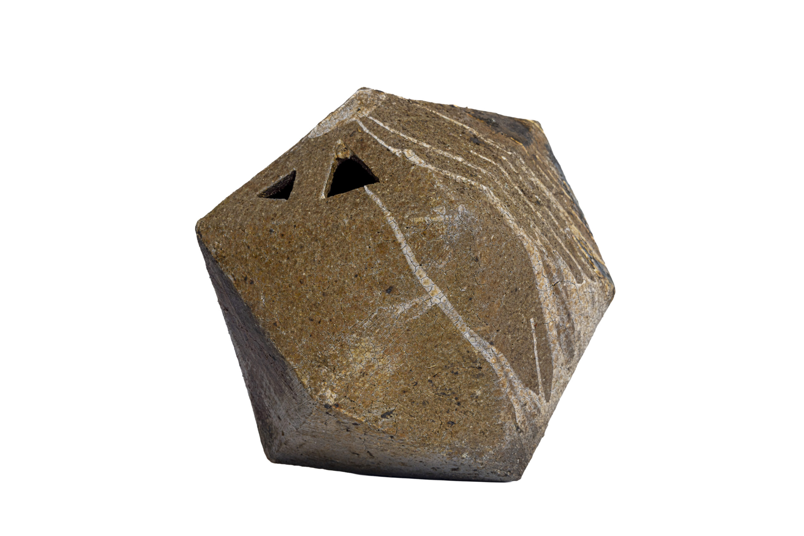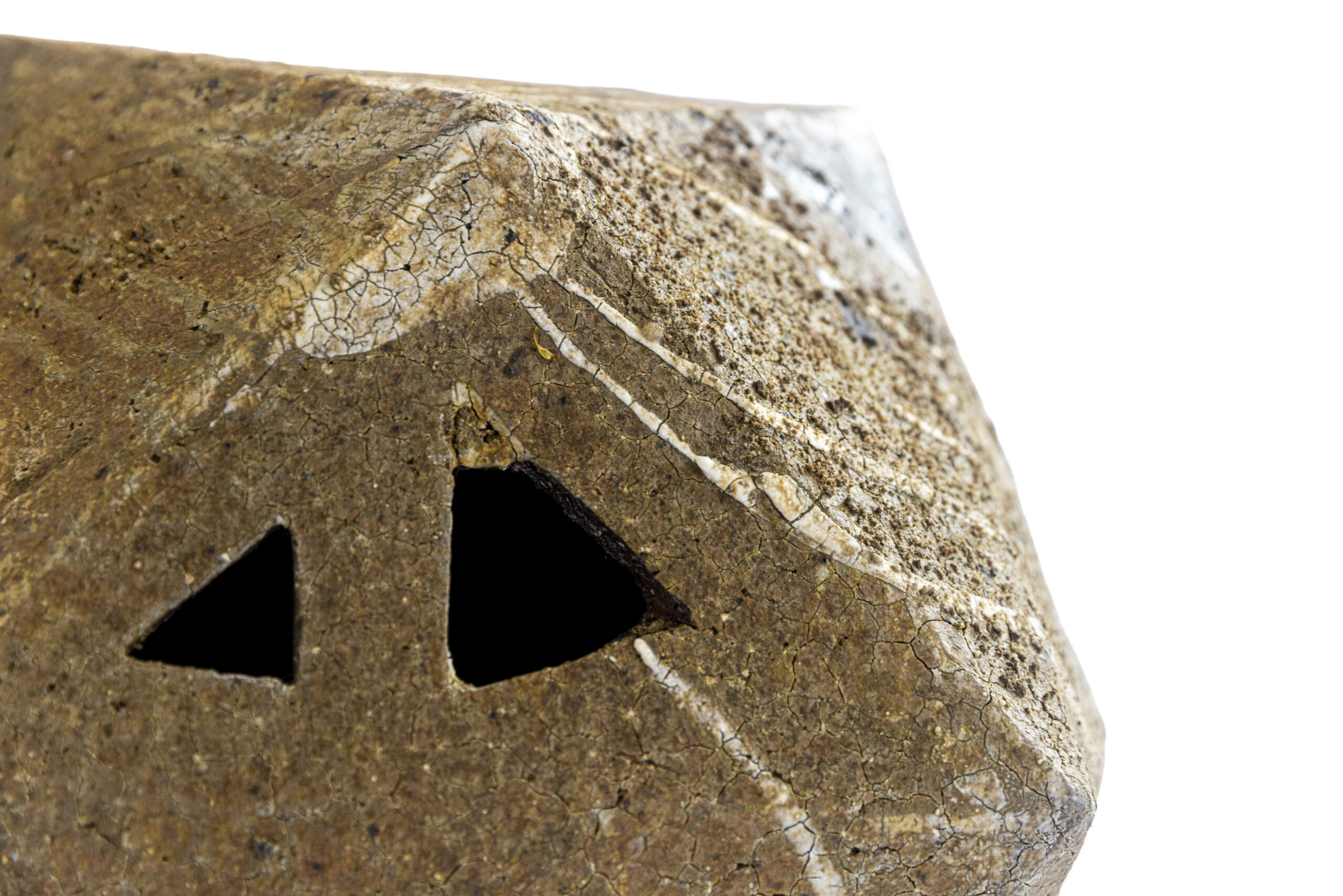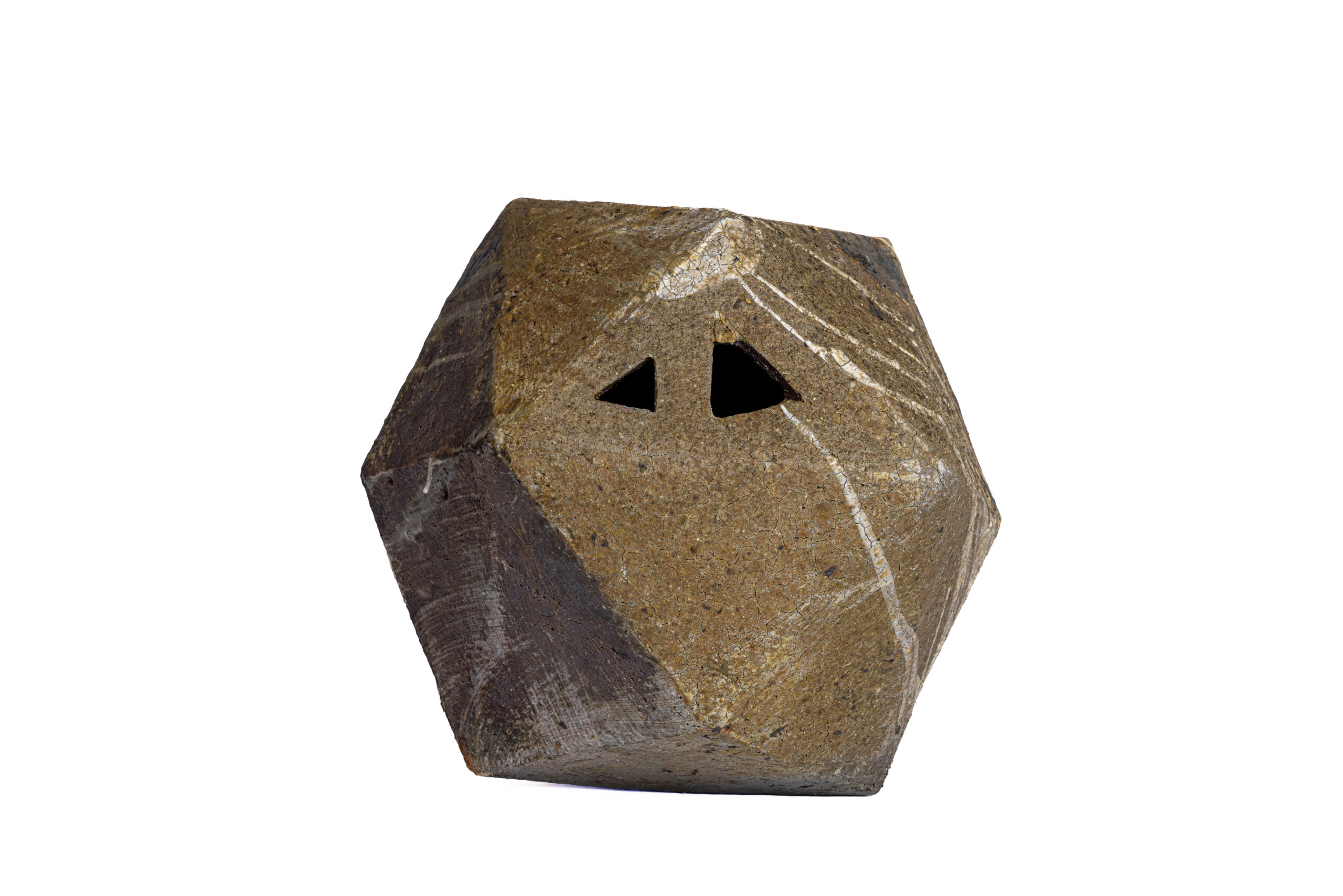 The sculpture, a complex node of six interlocking pyramids, functions as a reservoir of potential energy. It gathers force at the center and directs it outward through its multiple apexes, creating a sensation of kinetic resilience. While rooted in intimate memory, the work ultimately expands into the universal language of Platonic solids, disciplining the raw, elemental nature of the clay with the sharp, mathematical precision of sacred geometry.