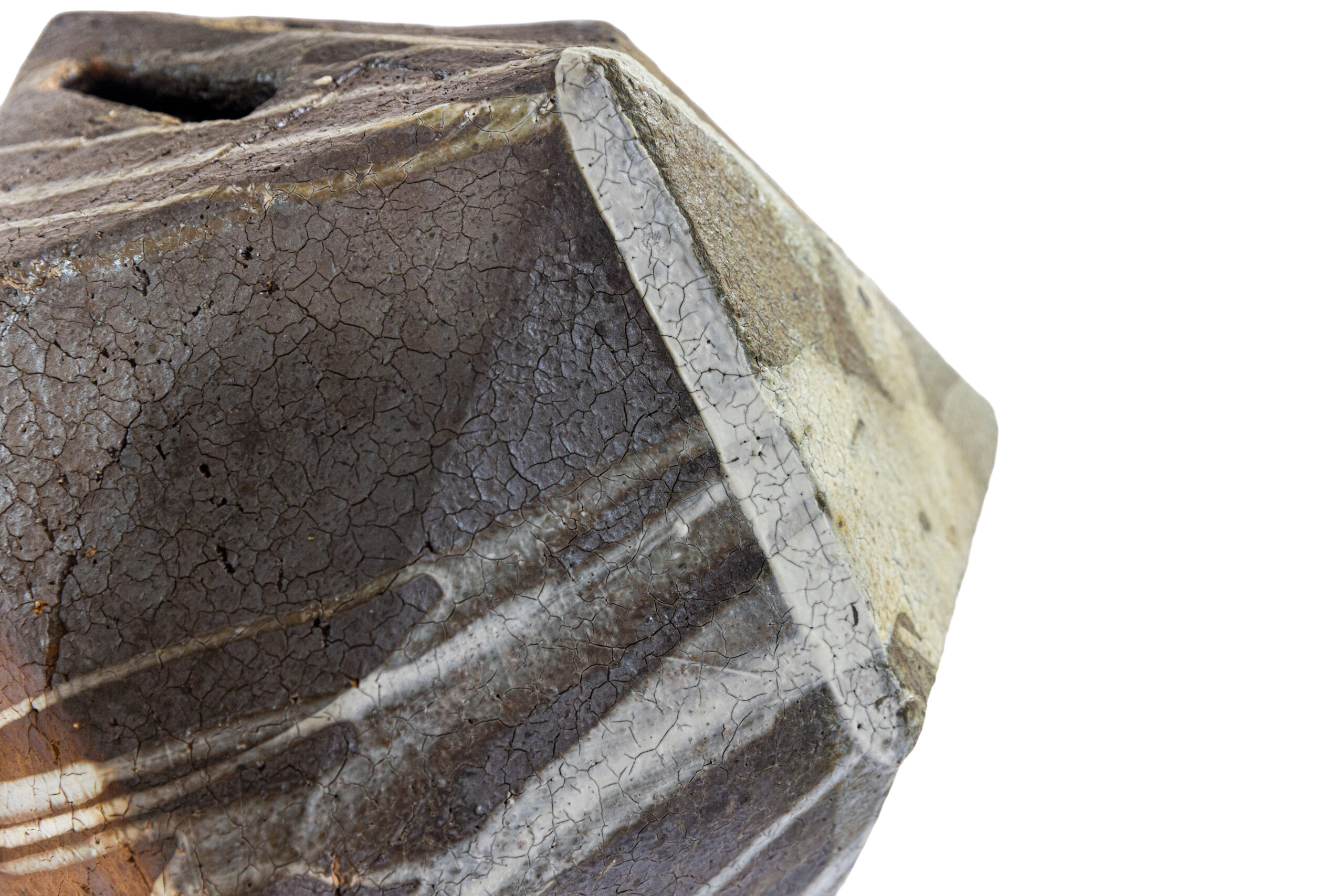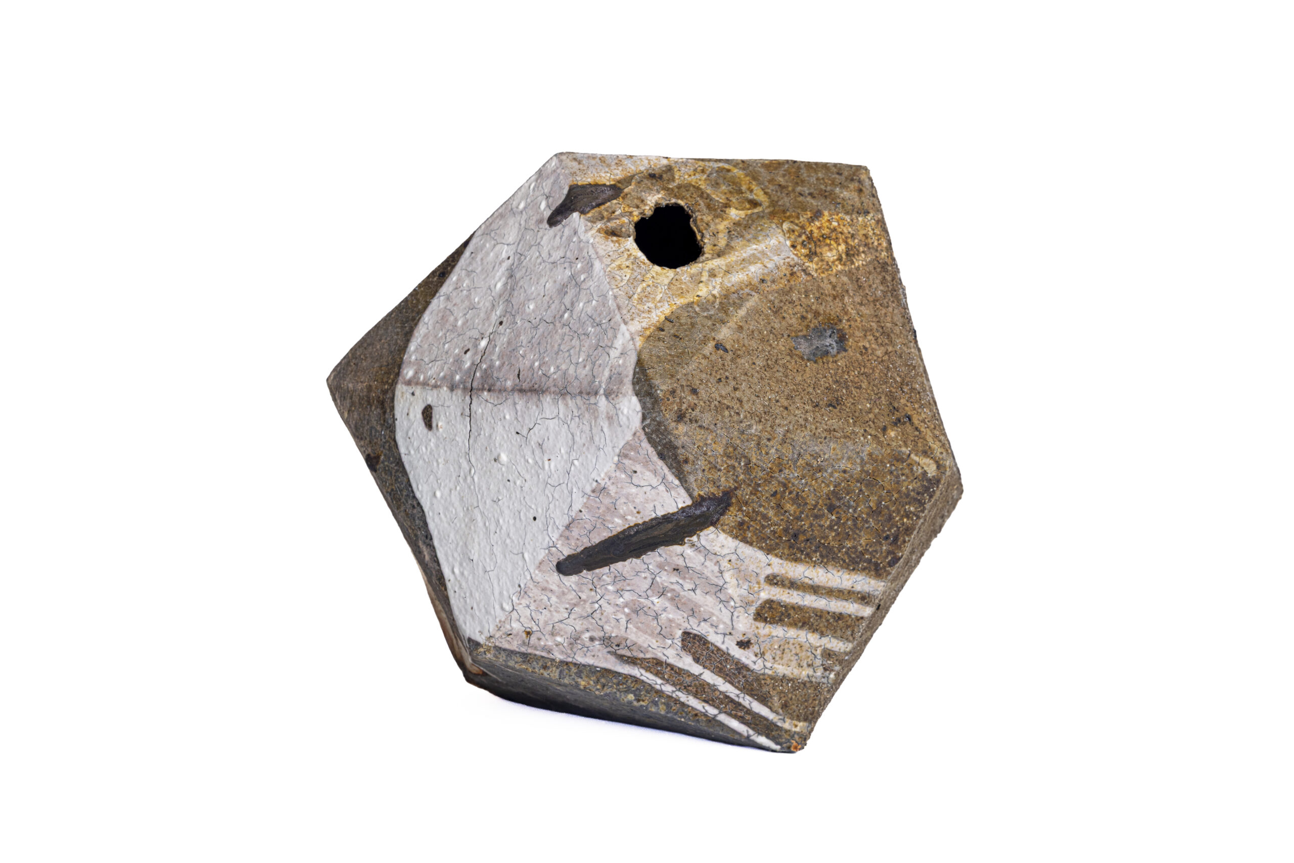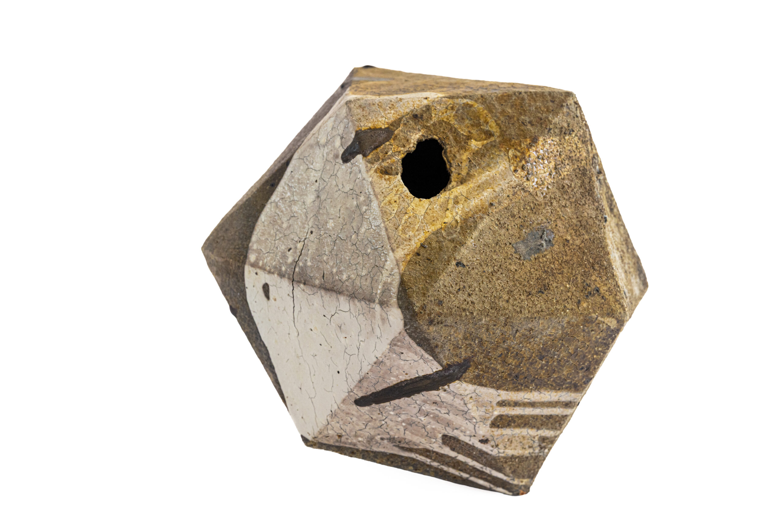 The sculpture, a complex node of six interlocking pyramids, functions as a reservoir of potential energy. It gathers force at the center and directs it outward through its multiple apexes, creating a sensation of kinetic resilience. While rooted in intimate memory, the work ultimately expands into the universal language of Platonic solids, disciplining the raw, elemental nature of the clay with the sharp, mathematical precision of sacred geometry.