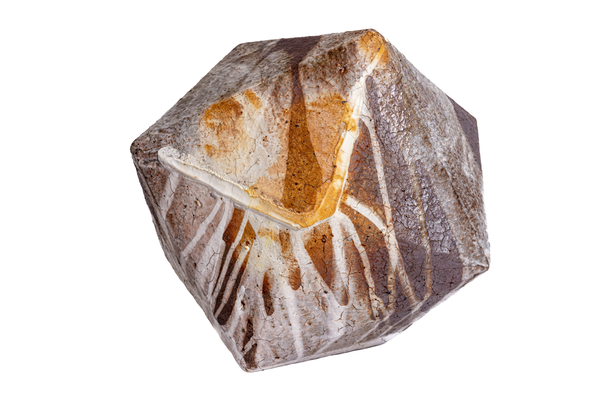 The sculpture, a complex node of six interlocking pyramids, functions as a reservoir of potential energy. It gathers force at the center and directs it outward through its multiple apexes, creating a sensation of kinetic resilience. While rooted in intimate memory, the work ultimately expands into the universal language of Platonic solids, disciplining the raw, elemental nature of the clay with the sharp, mathematical precision of sacred geometry.