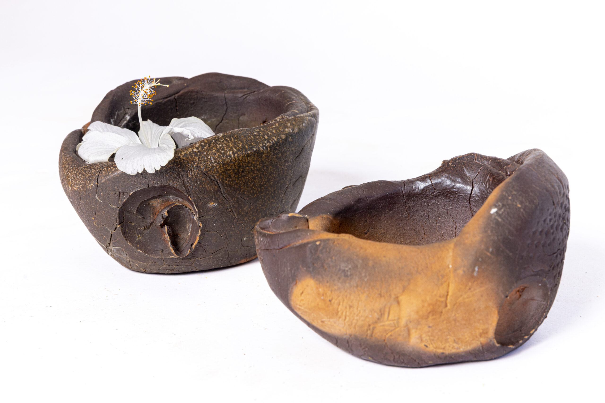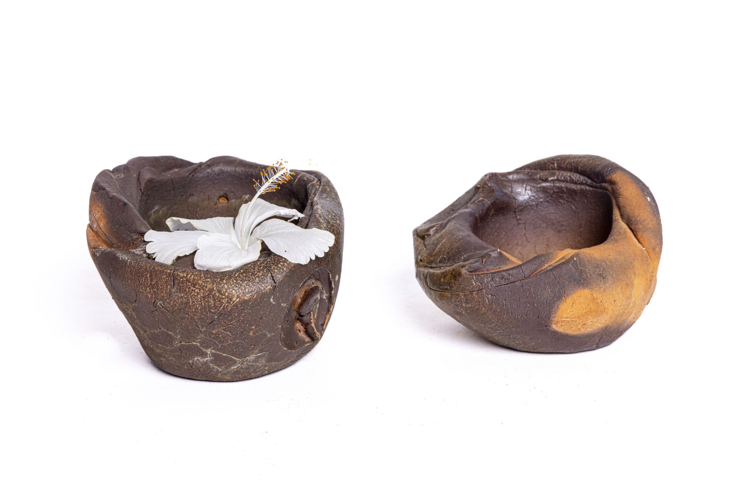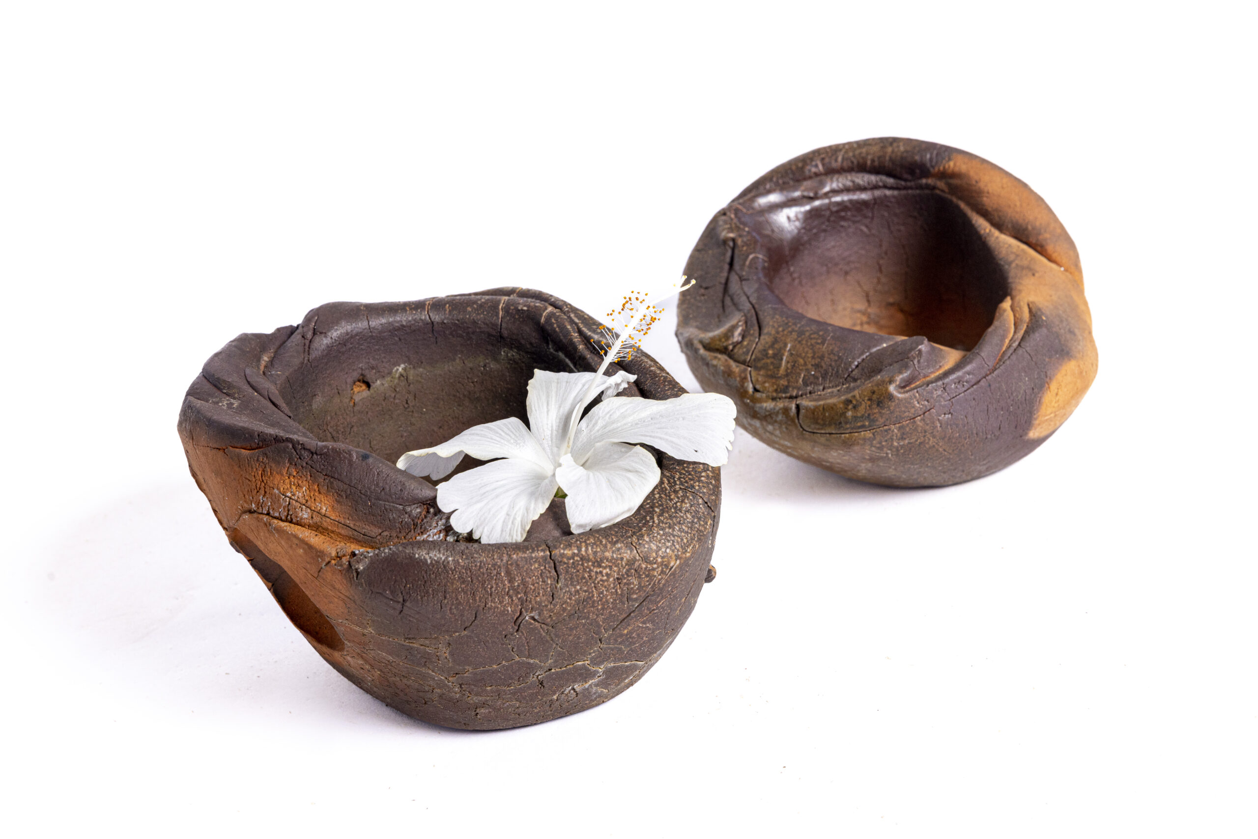 A set of two petite vessels for serving nuts, spices, or condiments, or for holding small keepsakes.