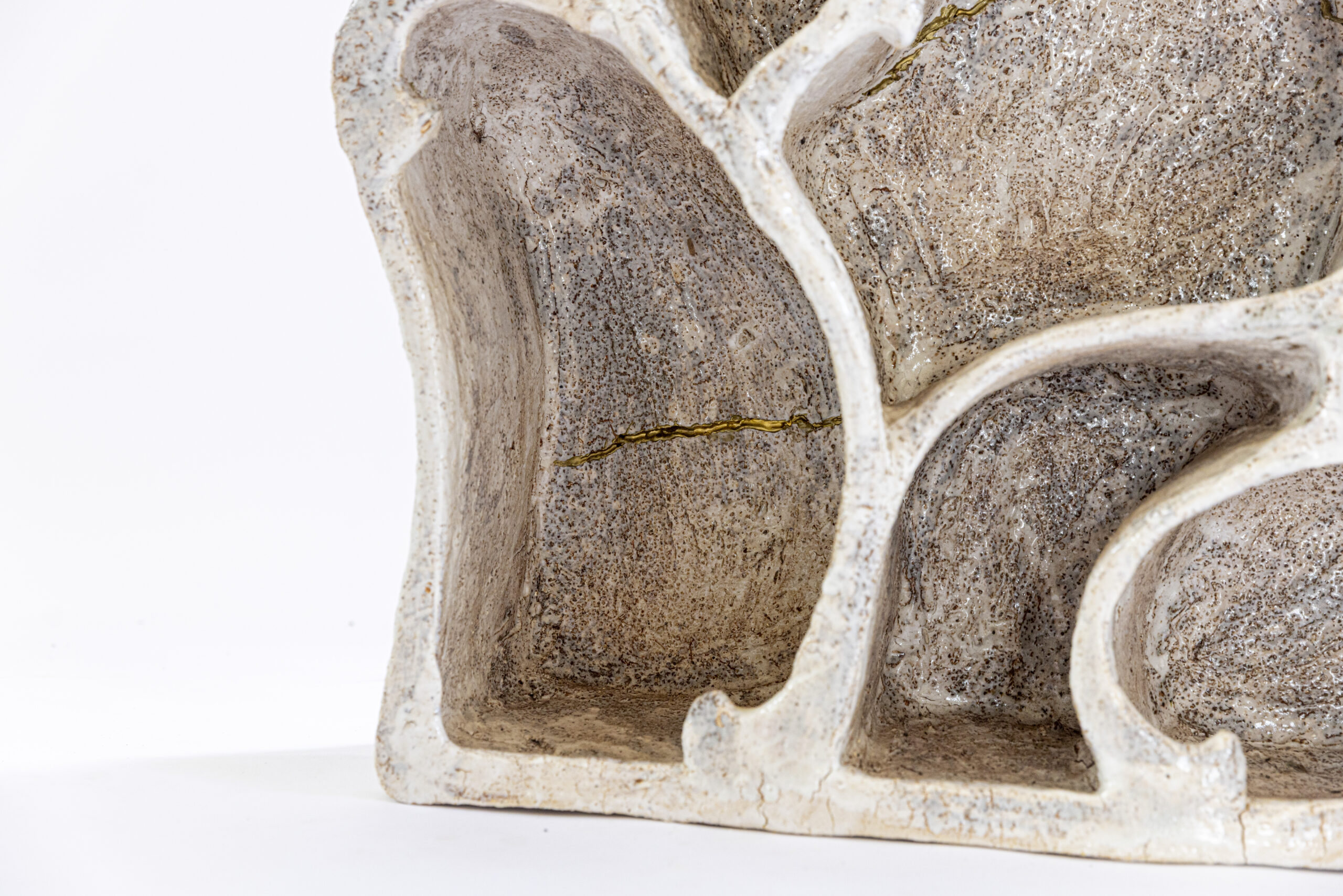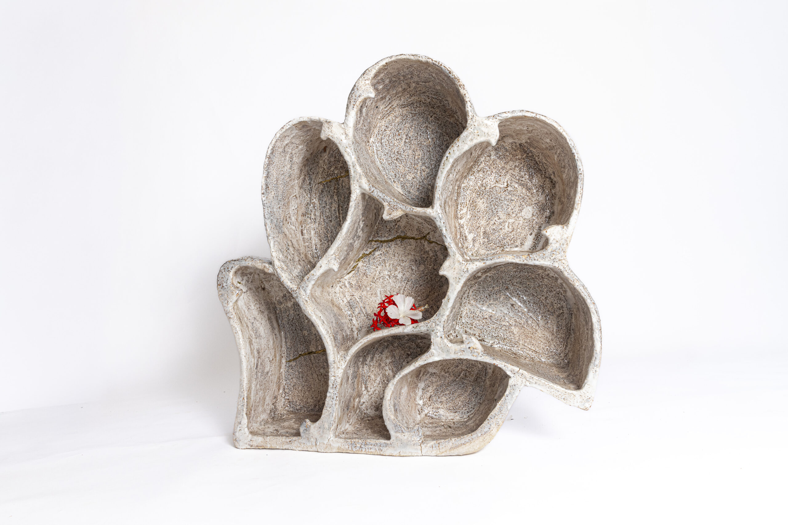A grand decorative shelving structure, echoing the natural architecture of a bird-filled tree, created to display treasured pieces.