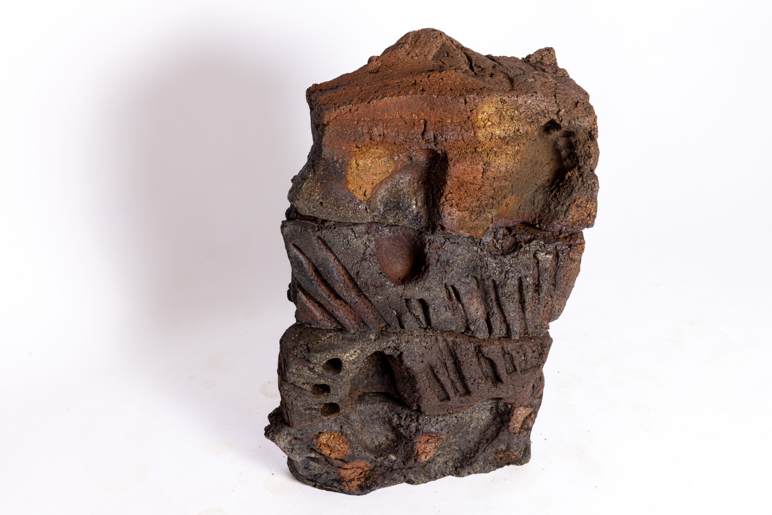 Created between 2018 and 2025 from native clay sourced directly from Ousteri Lake—minutes from her studio—these pieces represent the last use of this now-unavailable material. Working in this direct, place-bound way revives an ancient practice in which the local earth becomes inseparable from the final form, lending the works a rare immediacy and authenticity.